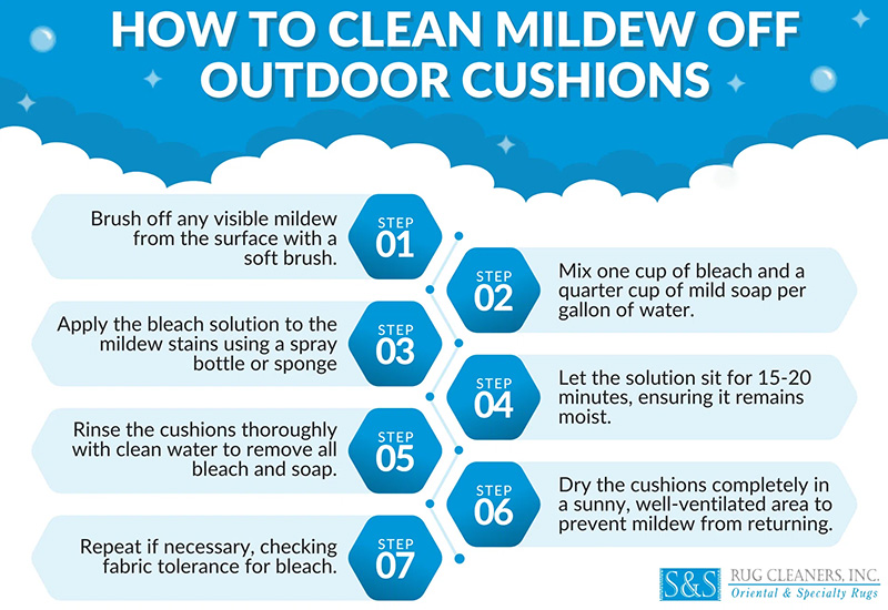 Using a soft brush or cloth, gently scrub the stained area with the soap solution. Rinse the cushion thoroughly with clean water to remove all soap residue. Allow the cushion to air dry completely in a sunny spot to prevent any mildew growth.